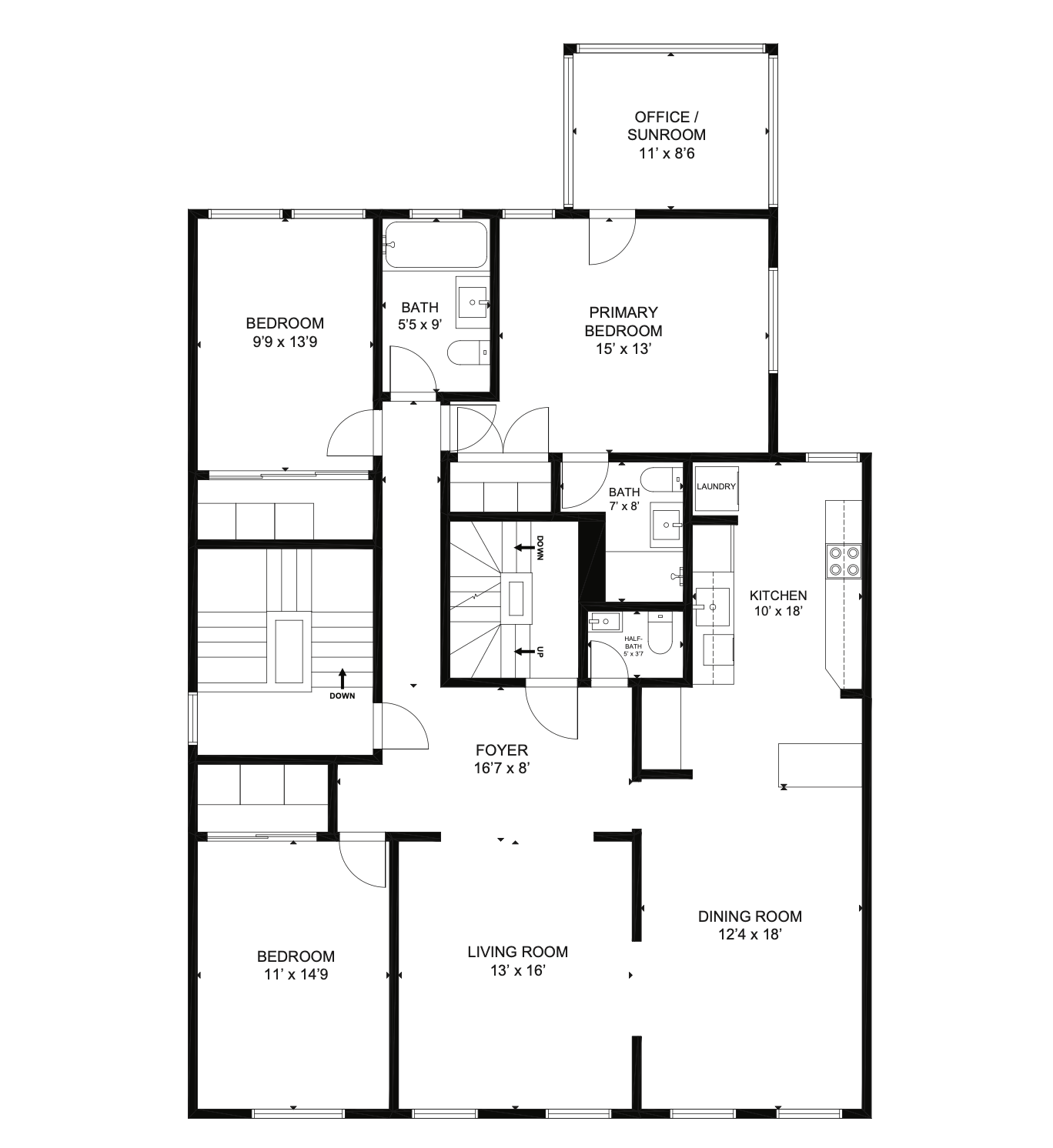 3 bedrooms + 2F1h bathrooms + 1,594 sq. ft.